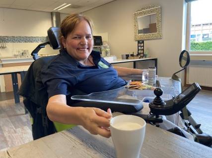 “We zijn pas met het lunchcafé gestart en op dit moment zijn we maar met een paar deelnemers, dus ik kan nog wel wat collega’s gebruiken! Ik zou daarom ook tegen anderen willen zeggen: probeer het! Kom eens langs om te kijken of het iets voor je is om hier in het lunchcafé te werken. Ook als je een behoorlijke beperking hebt is het mogelijk. Kijk maar naar mij. Als je het niet probeert, dan weet je het ook niet.”