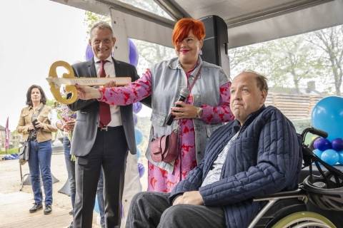 Voor hen stond ook een belangrijke taak op de agenda. Namelijk het overhandigen van een symbolische sleutel aan de aannemer. Een prachtige gouden sleutel, gemaakt door een van de toekomstige bewoners, werd in bewaring gegeven aan de aannemer. Deze zal na het opleveren van de bouw weer teruggegeven worden aan de bewoners. Met het overhandigen van de sleutel werd ook de nieuwe naam van het gebouw bekend gemaakt.