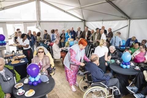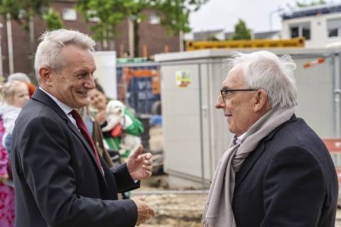 Een mooi en bijzonder project waarbij twee bestaande woonbegeleidingscentra van SGL – WBC Echt en WBC Roermond – worden samengevoegd in een heel moderne nieuwbouw. Maandag 15 mei werd een klein stukje van de bouwlocatie voor deze gelegenheid mooi versierd en aangekleed. Ballonnen, muziek, koffie, vlaai en champagne stonden klaar om een zestigtal genodigden te ontvangen, waaronder Smeets Bouw (aannemer), Metz architecten, Wonen Zuid (eigenaar van het gebouw), medewerkers van SGL (huurder) en natuurlijk de toekomstige bewoners van dit mooie project.