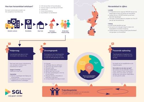 In onderstaande infographic vindt u informatie over het ontstaan van hersenletsel, cijfers over hersenletsel, het proces bij SGL van Servicepunt zorg, via het droomgesprek naar een passende oplossing. Op de achterzijde vindt u een overzicht van de mogelijkheden bij SGL.